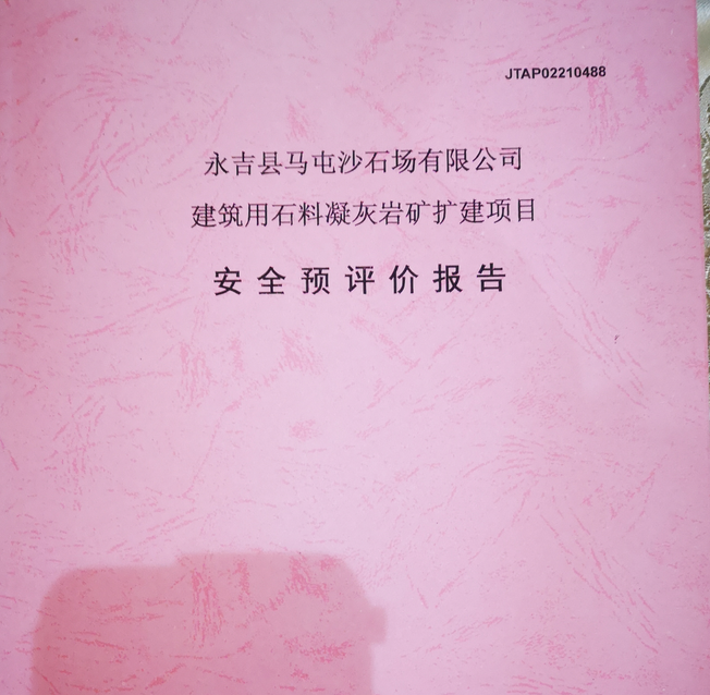 JTAP02210488--永吉縣馬屯沙石場(chǎng)有限公司建筑用石料凝灰?guī)r礦安全預(yù)評(píng)價(jià)...