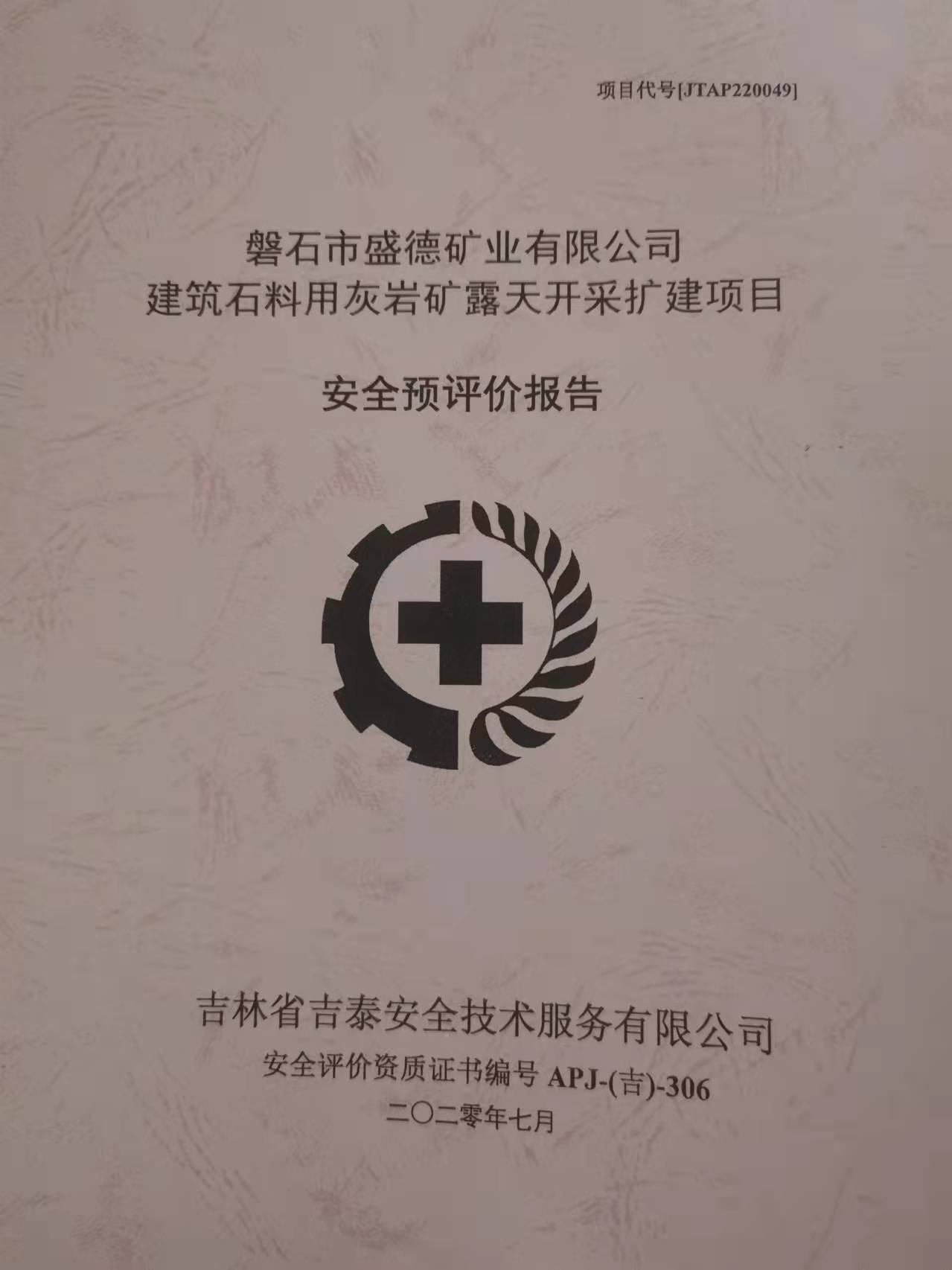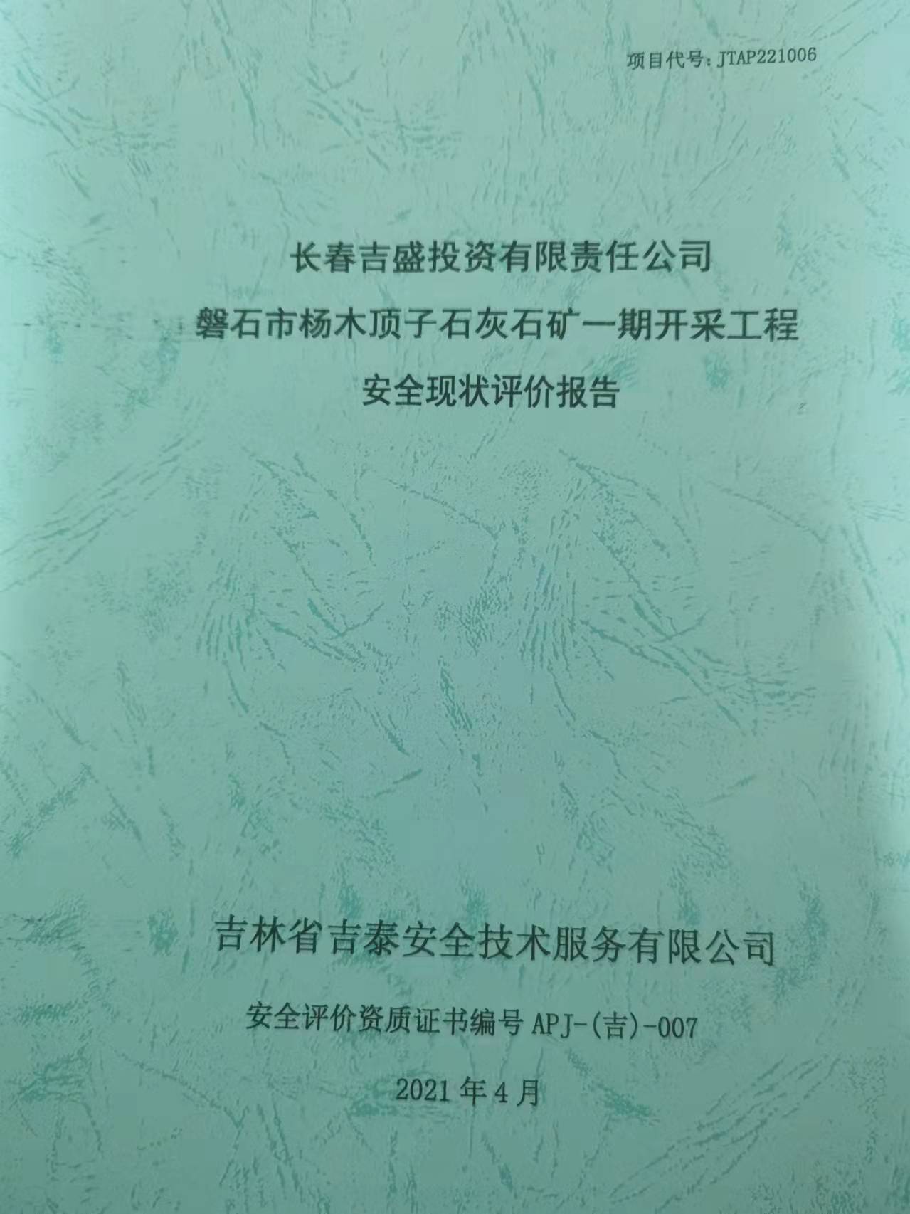 JTAP01210371吉林省長春市羊圈頂子水泥用灰?guī)r礦擴(kuò)建項目安全預(yù)評價