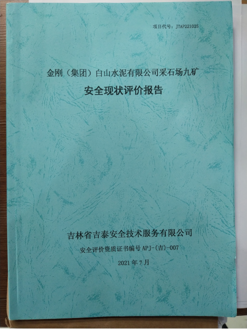 JTAP221025--金剛(集團(tuán))白山水泥有限公司采石場九礦安全現(xiàn)狀評價
