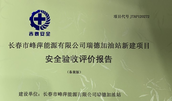 JTAP120072--長(zhǎng)春市峰萍能源有限公司瑞德加油站新建項(xiàng)目安全驗(yàn)收評(píng)價(jià)