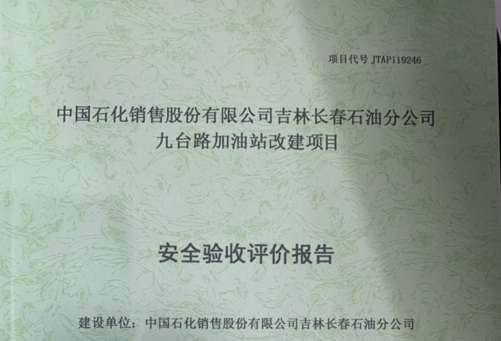 JTAP120255--長(zhǎng)春市雙營(yíng)子加油站改建項(xiàng)目安全驗(yàn)收評(píng)價(jià)