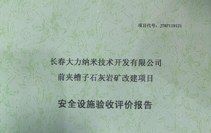 JTAP119121--長春大力納米技術(shù)開發(fā)有限公司前夾槽子石灰?guī)r礦改建項目安全...