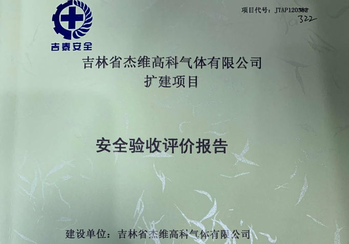 JTAP120322--吉林省杰維高科氣體有限公司擴建項目安全驗收評價