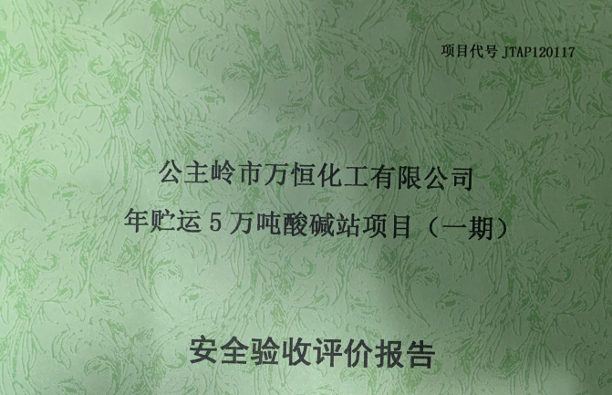 JTAP120117--公主嶺市萬(wàn)恒化工有限公司年貯運(yùn)5萬(wàn)噸酸堿站項(xiàng)目(一期)安...