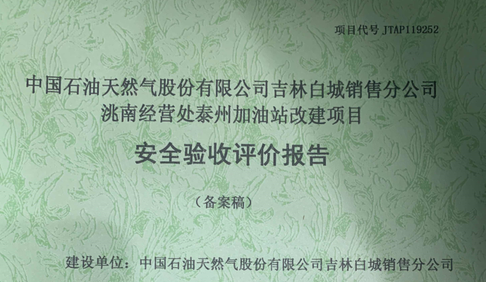JTAP120254--長(zhǎng)春市雙陽(yáng)區(qū)洪勝加油站改建項(xiàng)目安全驗(yàn)收評(píng)價(jià)