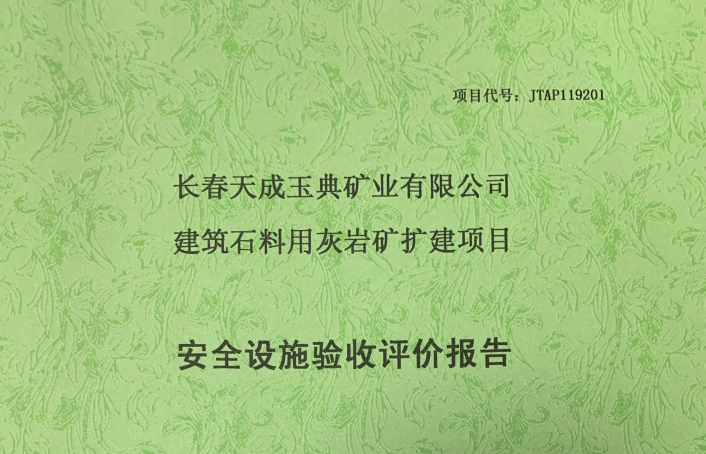 JTAP119201--長(zhǎng)春天成玉典礦業(yè)有限公司建筑石料用灰?guī)r礦擴(kuò)建項(xiàng)目安全設(shè)施...