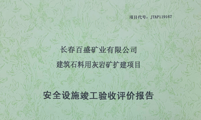 JTAP119167--長春百盛礦業(yè)有限公司建筑石料用灰?guī)r礦擴建項目安全設施竣工...