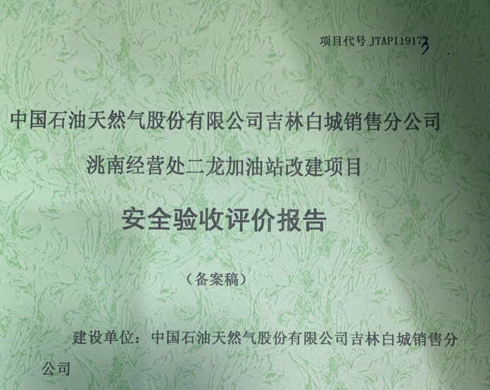 JTAP119347--長春市榮達石油經(jīng)營處新立城加油站改建項目安全驗收評價