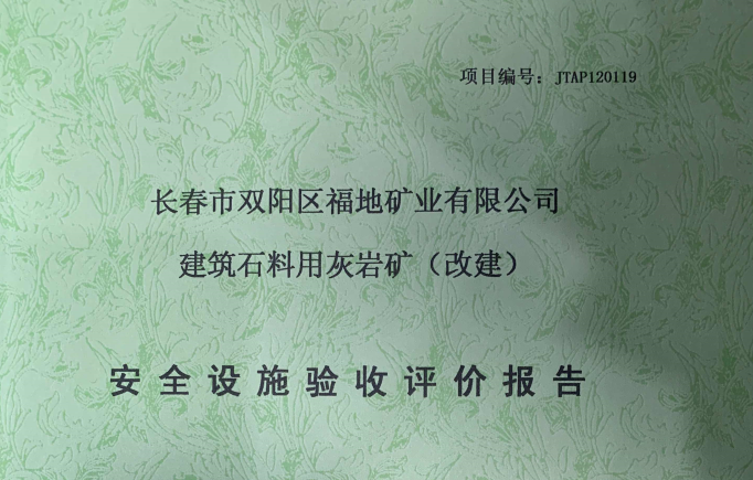 JTAP120119--長春市雙陽區(qū)福地礦業(yè)有限公司建筑石料用灰?guī)r礦(改建)安全...