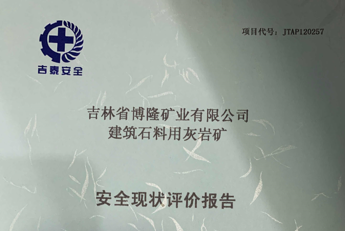 JTAP120257--吉林省博隆礦業(yè)有限公司建筑石料用灰?guī)r礦安全現(xiàn)狀評價項(xiàng)目