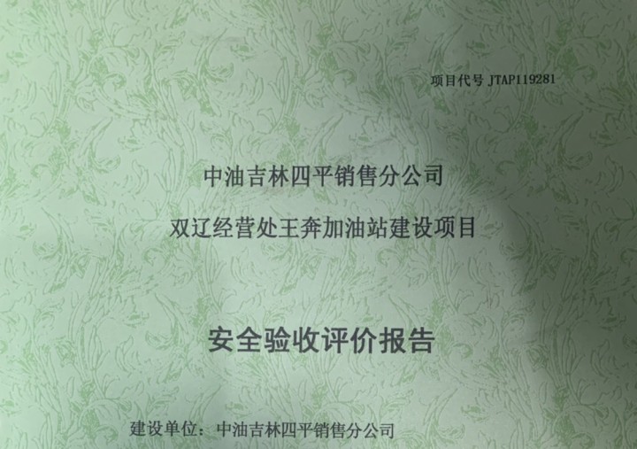 JTAP119281--中油吉林四平銷售分公司雙遼經(jīng)營處王奔加油站建設(shè)項(xiàng)目安全驗(yàn)...