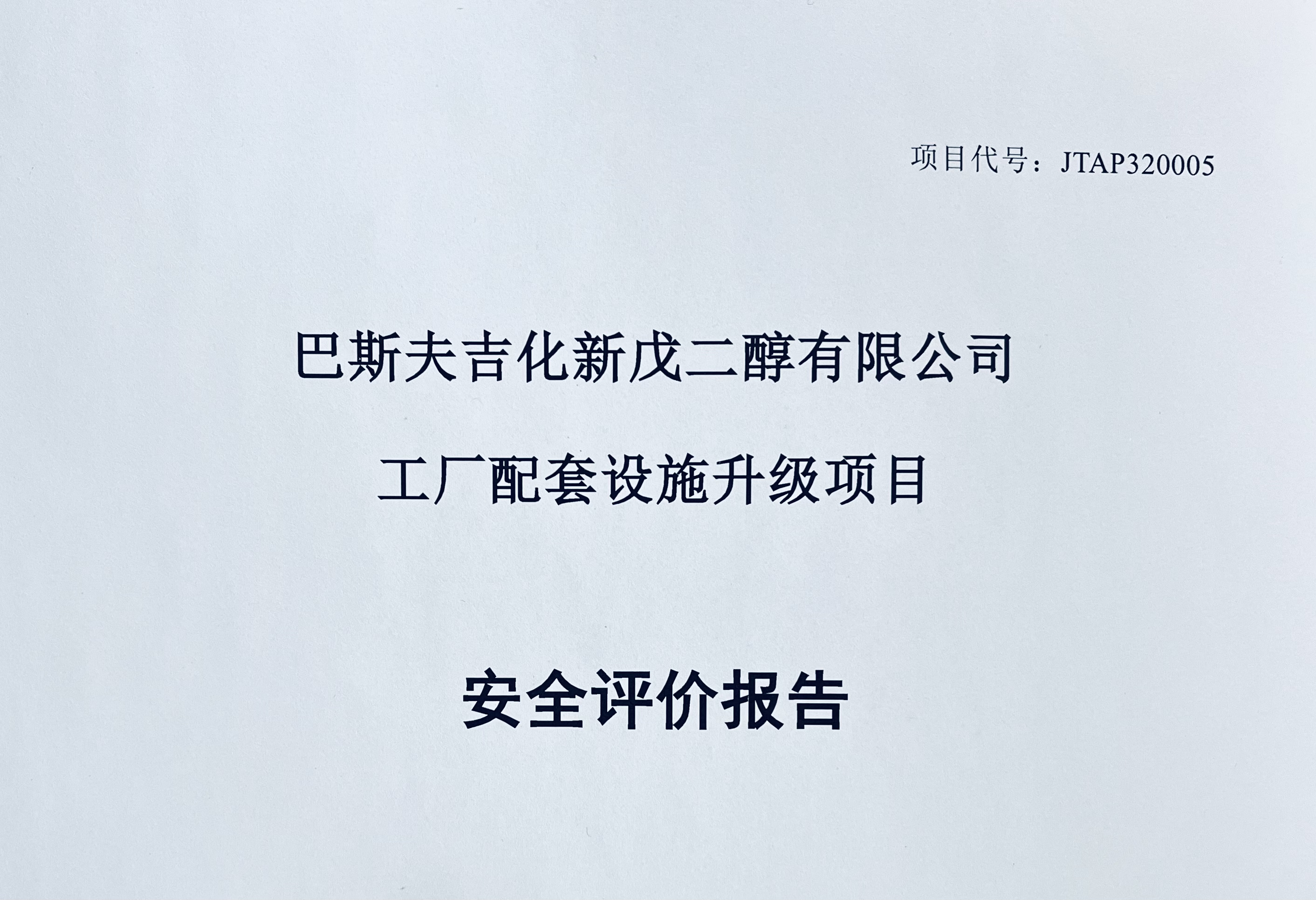 JTAP0320005--巴斯夫吉化新戊二醇有限公司工廠配套設(shè)施升級(jí)項(xiàng)目安全評(píng)價(jià)