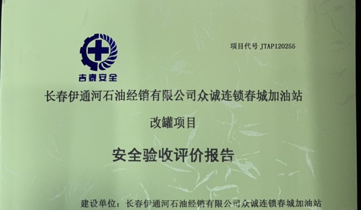 JTAP120255--長春伊通河石油經(jīng)銷有限公司眾誠連鎖春城加油站改罐項(xiàng)目安全...