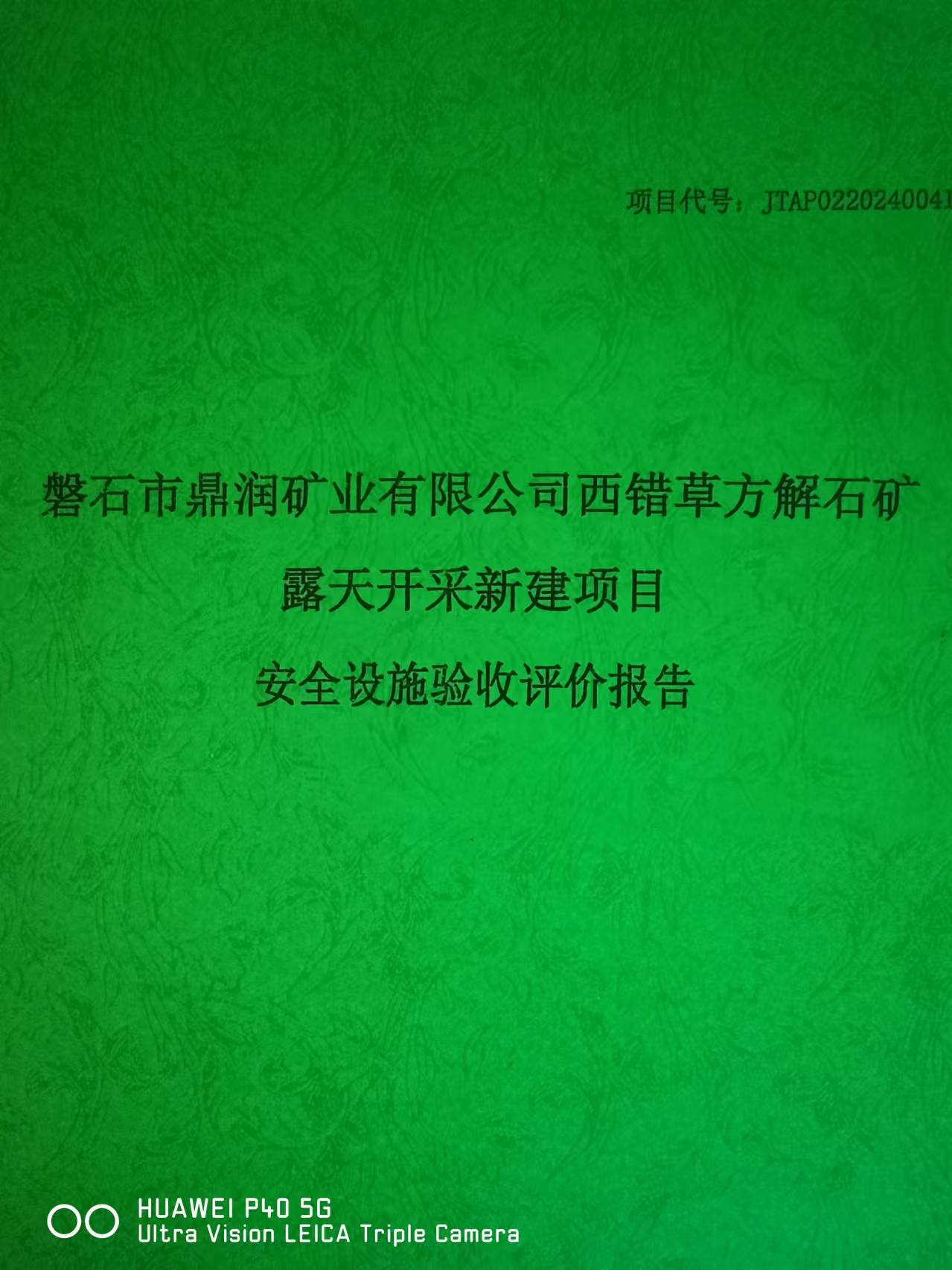 JTAP0220240041-磐石市鼎潤礦業(yè)有限公司西錯草方解石礦新建項目安全設...