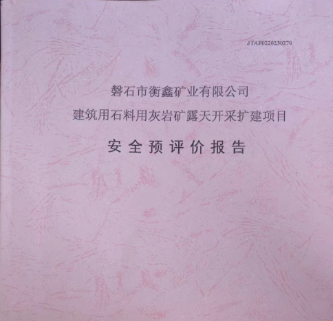 JTAP0220230270--磐石市衡鑫礦業(yè)有限公司建筑用石料用灰?guī)r礦露天開(kāi)采...