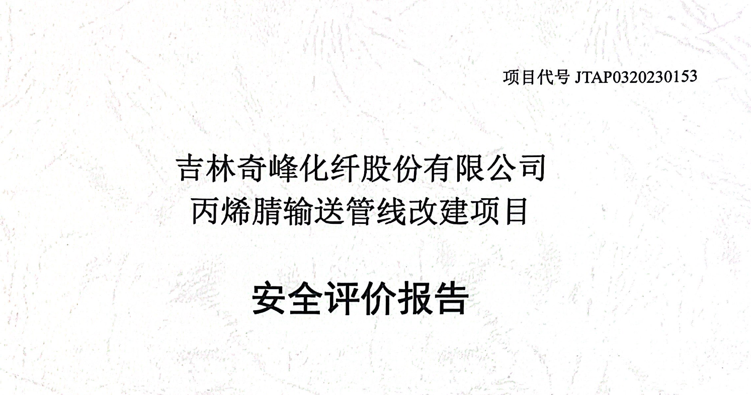 JTAP0320230153--吉林奇峰化纖股份有限公司丙烯腈輸送管線改造項目安...