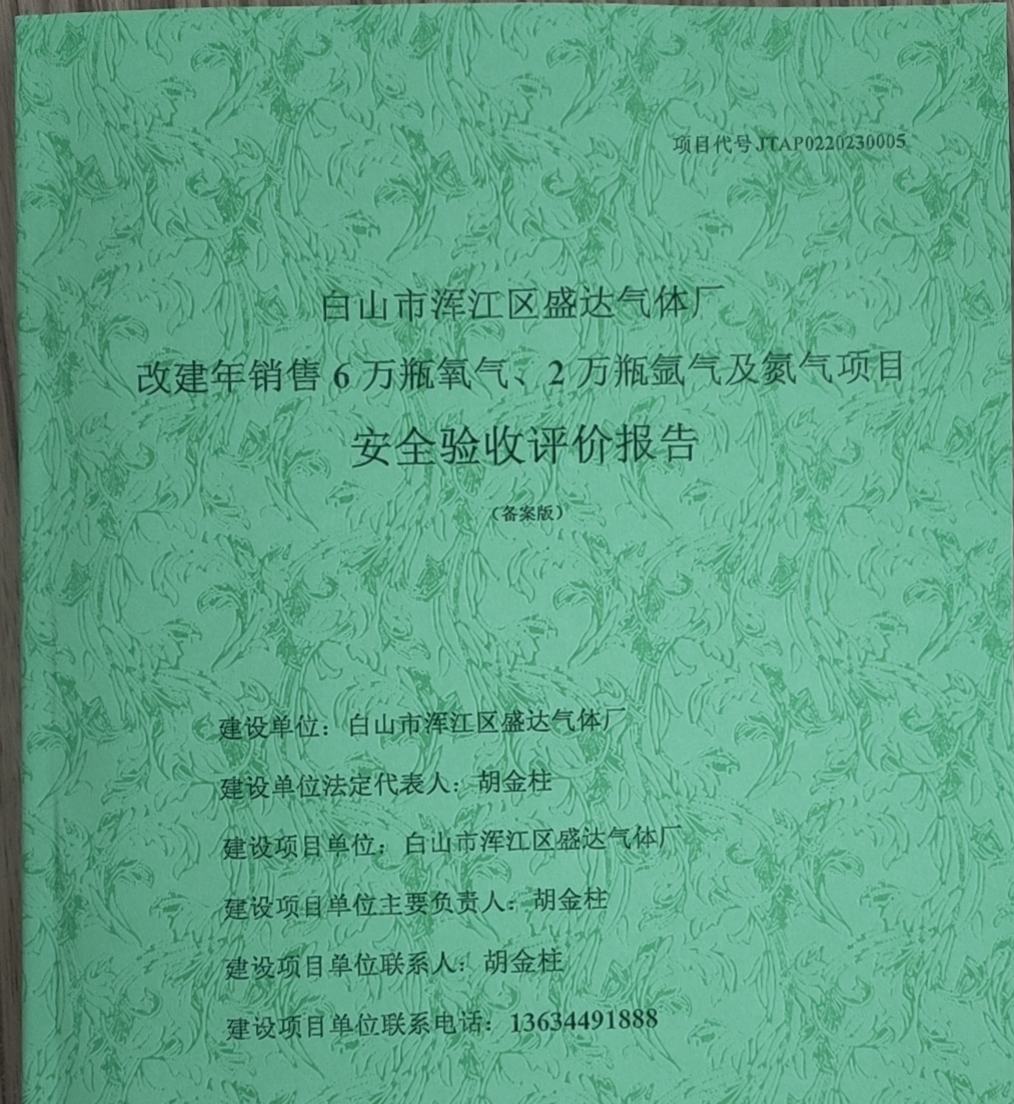 JTAP0220230005--白山市渾江區(qū)盛達氣體廠改建年銷售6萬瓶氧氣、2萬...