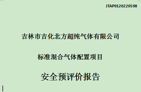 JTAP0120220598--吉林市吉化北方超純氣體有限公司安全預(yù)評價