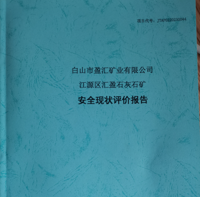 JTAP0220230044-白山市盈匯礦業(yè)有限公司江源區(qū)匯盈石灰石礦安全現(xiàn)狀評...