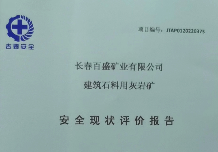 JTAP0120220373--長春百盛礦業(yè)有限公司建筑石料用灰?guī)r礦安全現(xiàn)狀評價