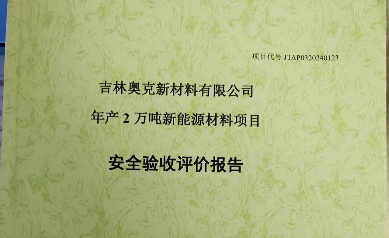 JTAP0320240123--吉林奧克新材料有限公司2萬噸新能源材料項(xiàng)目安全驗(yàn)...